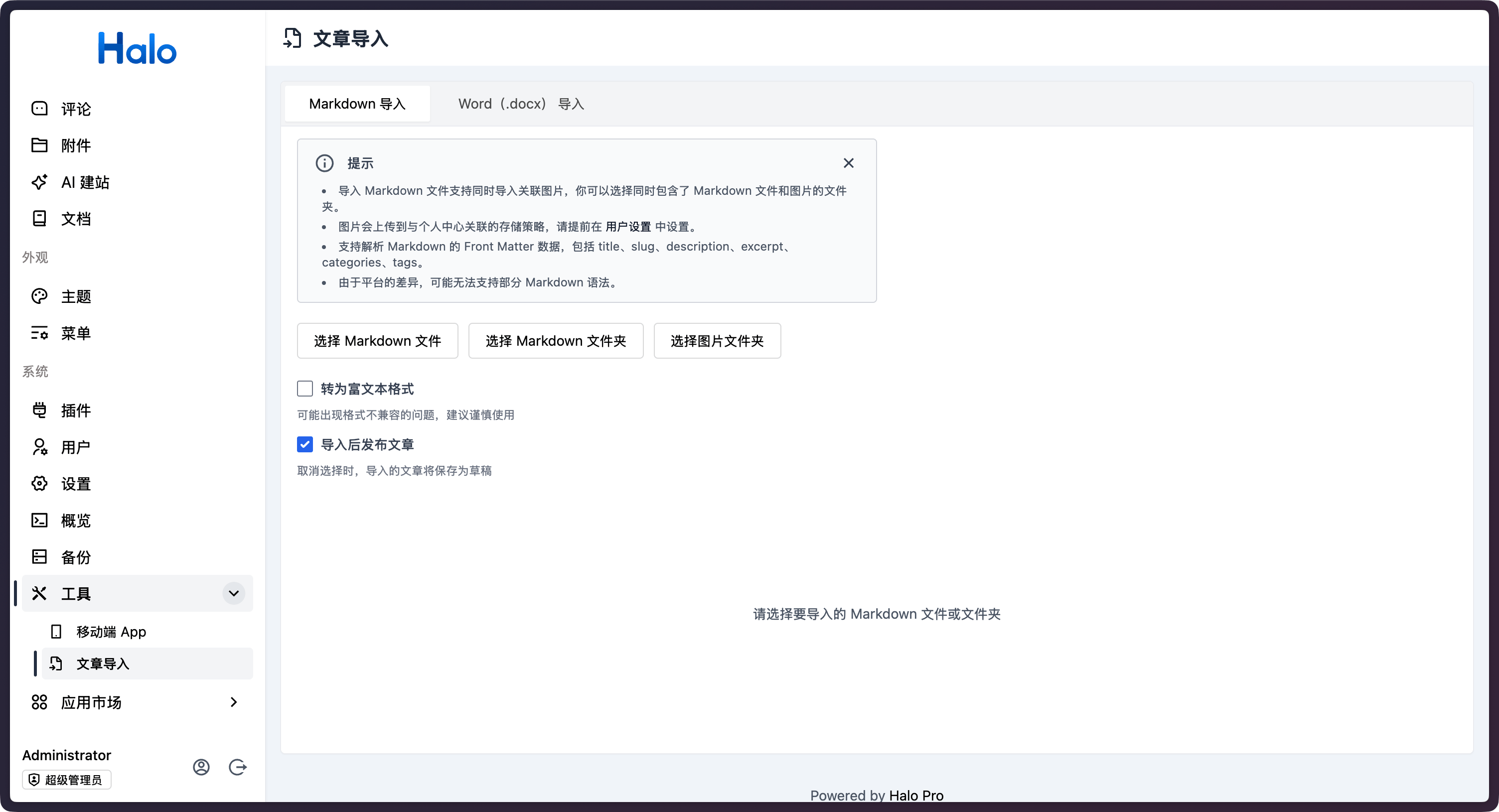 这是一个专为 Halo 文章内容编写的插件,支持内容格式转换、导出、批量导入 Markdown、文章克隆等功能,以下是最新版本中提供的部分新功能: