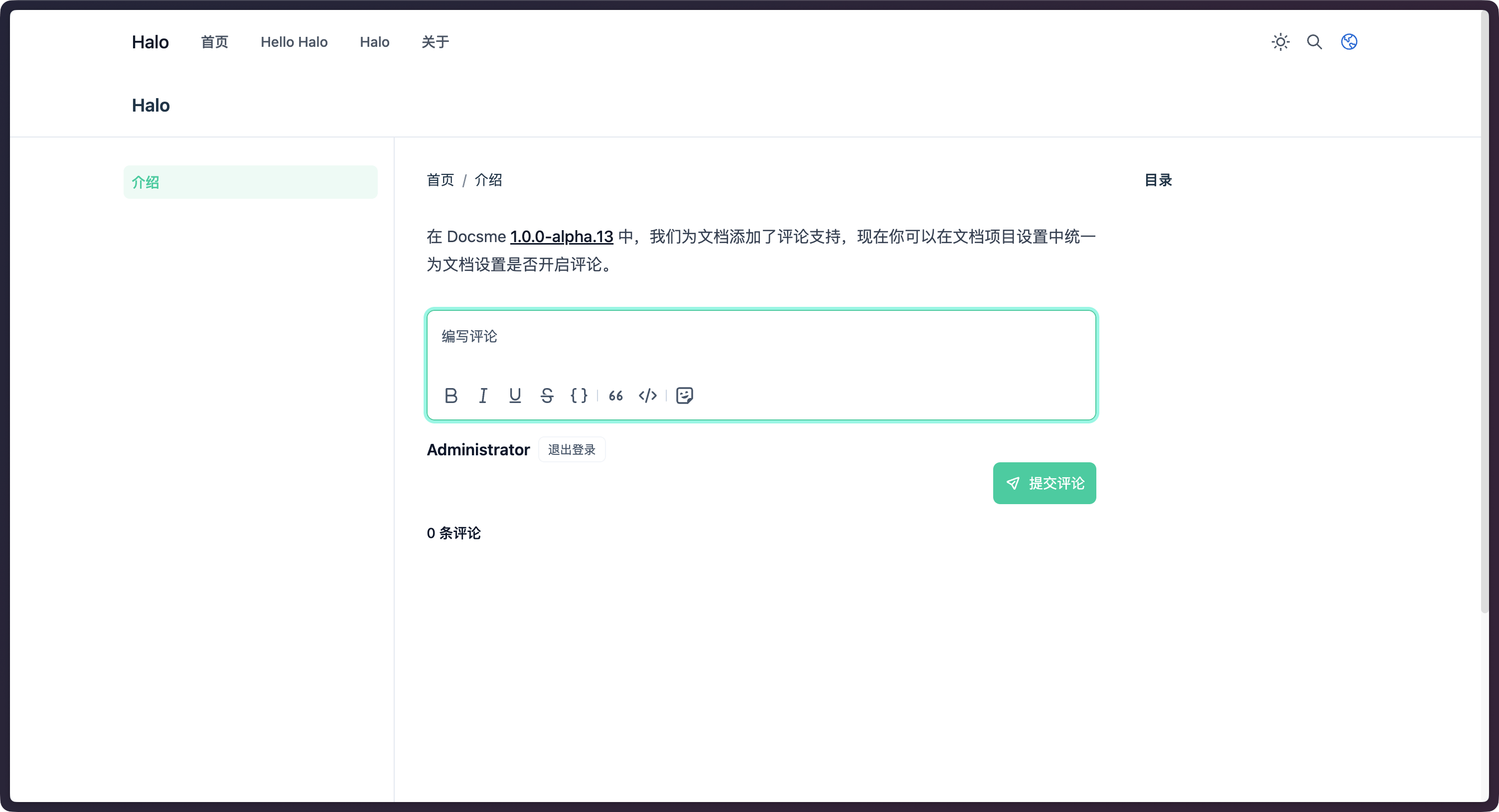 在 Docsme 1.0.0 中,我们简化了主题实现文档模板的开发过程,可以让主题更加方便快速的融合主题的样式。目前 Halo 的默认主题 Earth 的最新版本中已经完成了适配。