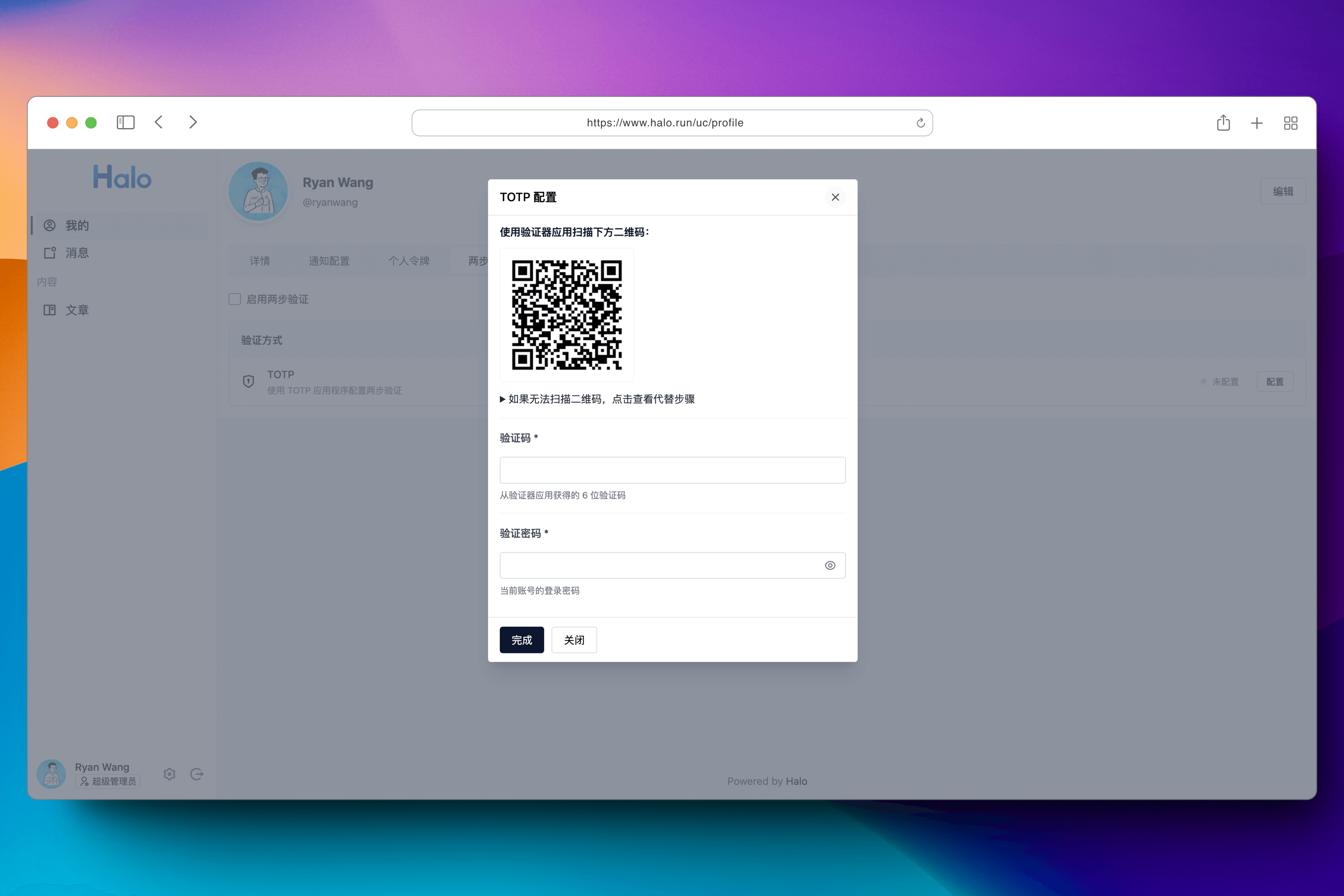 在这个版本中,Halo 主要支持了 2FA 认证和模型索引机制,以及其他 40 多项功能优化和问题修复。