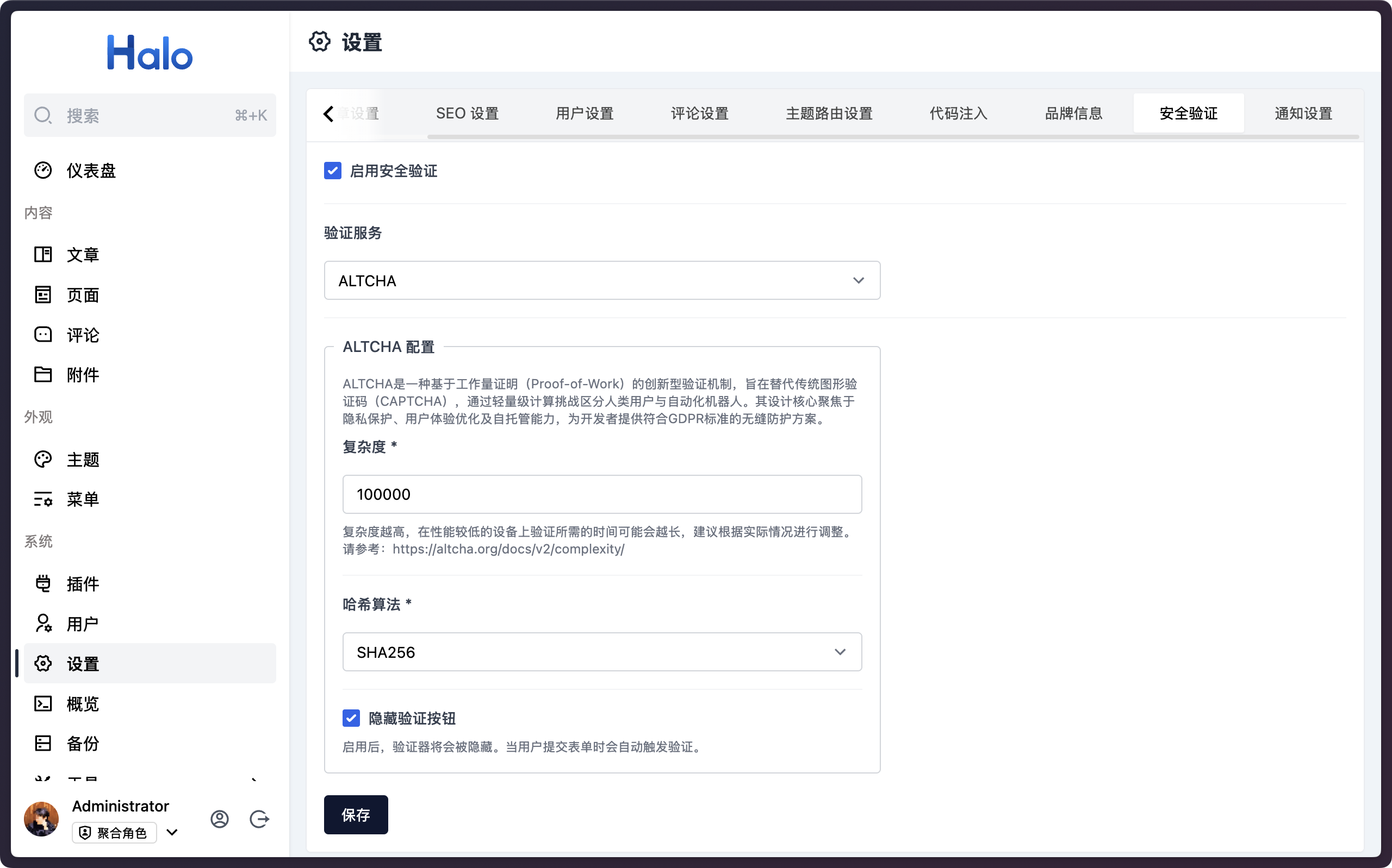 在 Halo 2.21 中,我们为登录、注册、发送验证码等关键位置添加了人机验证的功能,这能在很大程度上防止网站被恶意注册和暴力破解。