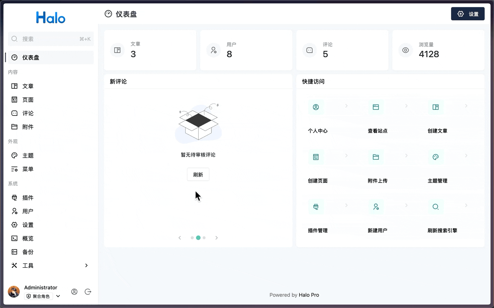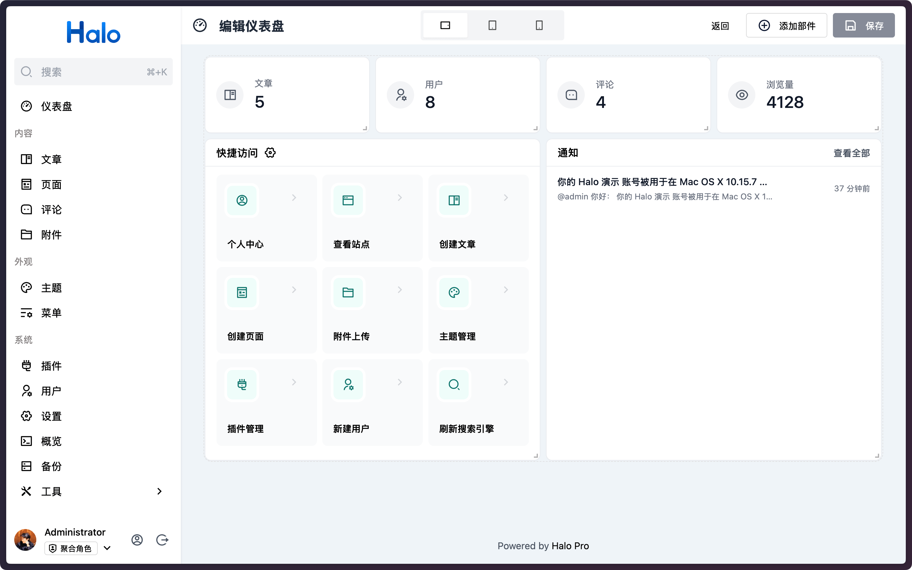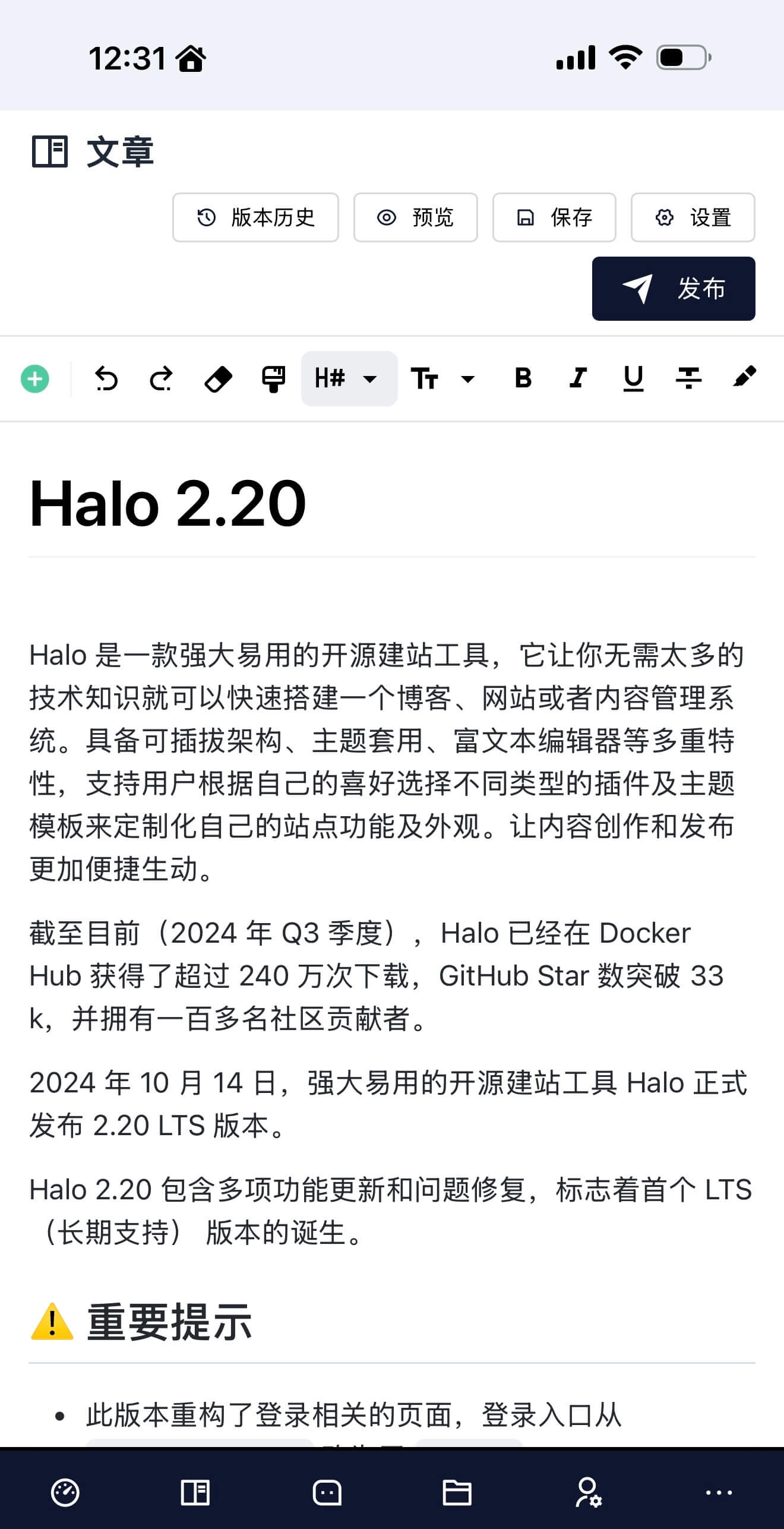 Halo 是一款强大易用的开源建站工具,它让你无需太多的技术知识就可以快速搭建一个博客、网站或者内容管理系统。具备可插拔架构、主题套用、富文本编辑器等多重特性,支持用户根据自己的喜好选择不同类型的插件及主题模板来定制化自己的站点功能及外观。让内容创作和发布更加便捷生动。