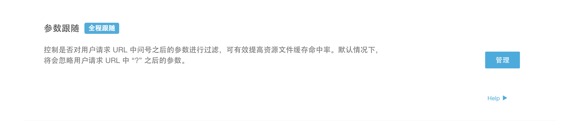 此设置项需要改为 全程跟随,否则在 CDN 回源的时候不会携带请求参数,会造成网页上部分请求无法正常处理,表现可能为: